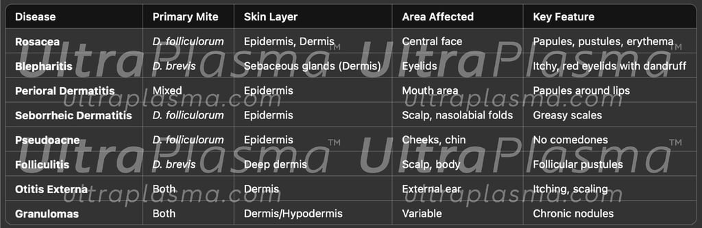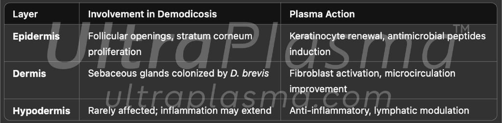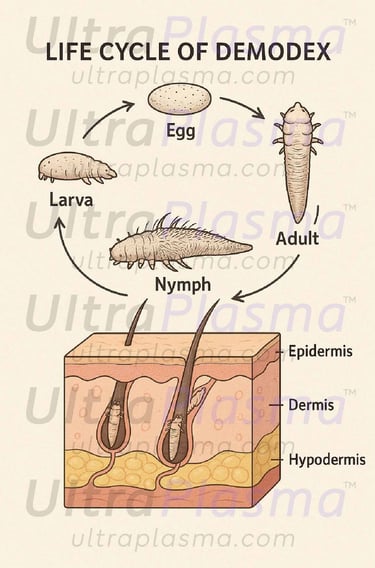 Demodex folliculorum and Demodex brevis are ubiquitous ectoparasitic mites implicated in various dermatological disorders, including rosacea, blepharitis, seborrheic dermatitis, and acneiform eruptions. Conventional treatment strategies remain limited due to recurrence and drug resistance. This article introduces a novel, multi-modal therapeutic approach using UltraPlasma™, a proprietary multi-platform plasma system integrating arc, argon, and helium plasma technologies, to eliminate Demodex mites effectively. The treatment’s success hinges on its ability to interact with epidermal, dermal, and hypodermal layers, while utilizing ozone (O₃), nitric oxide (NO), and reactive species to deliver localized microbicidal, anti-inflammatory, and immunomodulatory effects. Figures and references are provided to support the multi-layered mechanism and clinical potential.